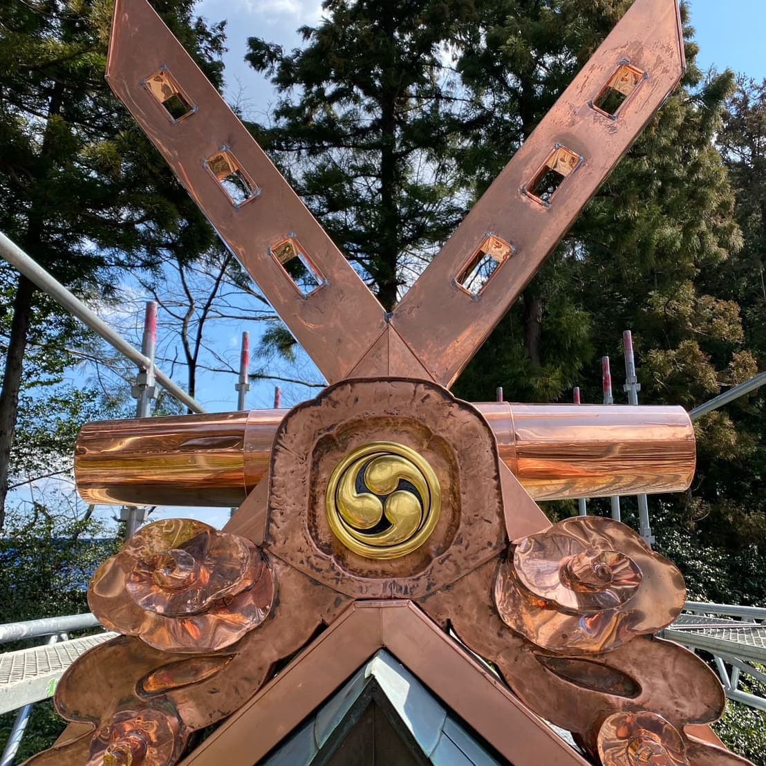 神社や仏閣の屋根や鳥居の改修工事には、銅板葺きという技術が使われています。銅板葺きは日本の伝統的な建築技術で、耐震性と耐久性が高く、古来から大切な文化財建築を火事や劣化から守ってきました。以下は銅板葺きの工程の一般的な流れです: